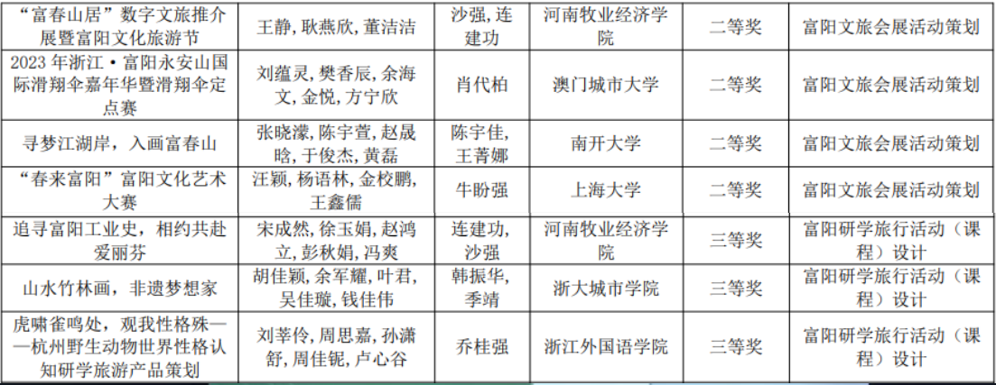 近日,第十二届浙江省会展策划创意大赛在浙江杭州落下帷幕,beat365会展经济与管理专业沙强、连建功两位老师指导的《“富春山居”数字文旅推介展暨富阳文化旅游节》展会项目策划、《追寻富阳工业史,相约共赴爱丽芬》研学课程设计两组作品入围总决赛,经过策划文案评比、PPT视频讲解等环节的激烈角逐,取得优异成绩,分获二、三等奖。