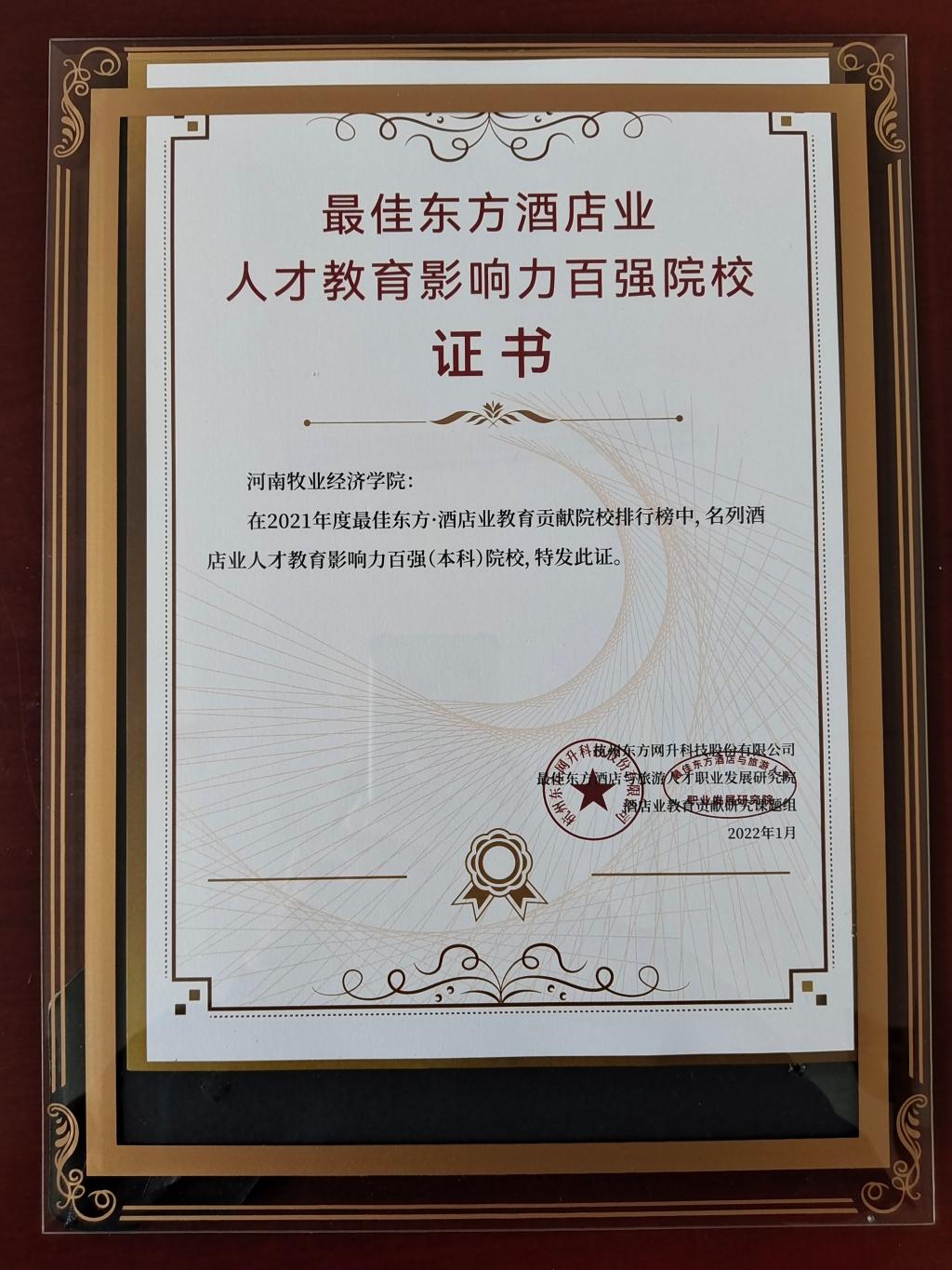 由国内权威专业旅游服务业招聘求职平台——最佳东方主办的首届“最佳东方酒店业职教影响力百强院校”排行近期在杭州揭晓。在2021年度最佳东方•酒店业教育贡献院校排行榜中,beat365荣获酒店业人才教育影响力百强(本科)院校。