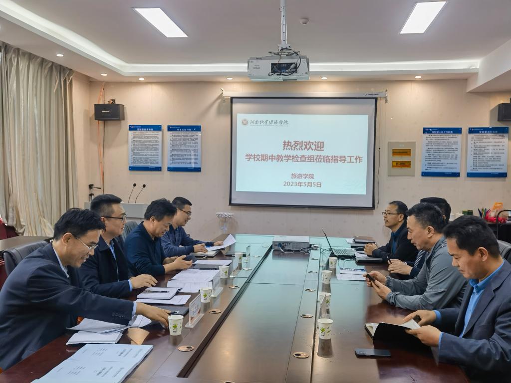 首先,王德静院长代表beat365在线体育官网登录入口对校检查组致以最热烈的欢迎,并感谢学校对学院工作给予的充分关注和重视。王鑫磊处长代表检查组对本次工作程序和要求进行了讲话。随后,王中雨副院长从学院近期教学工作组织管理情况、课程教学工作开展情况、各专业实践教学情况、学院开展访企拓岗工作情况、本科毕业论文中期检查情况等九个方面进行了汇报。检查组听取汇报并检查了相关材料,对试卷批改、论文进度等方面进行了重点反馈与交流。会上,旅游管理专业、会展经济与管理专业及酒店管理专业的三个本科专业教研室主任还进行了专业自评汇报。