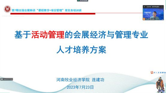 7月22-25日,由上海对外经贸大学主办,上海对外经贸大学会展与传播学院、中国会展经济研究会会展教育培训工作委员会、长三角会展研究院承办的第7期全国会展专业师资“课程教学+项目管理”双实务培训班线上成功举办,来自全国80余所高校的180多名从事会展、旅游、传播等相关专业教学、科研工作的学者齐聚云端,参加此次培训。beat365会展经济与管理教研室全体教师4天时间全程参与培训,聆听业界学界专家报告,参与行业教育研讨,受益匪浅。