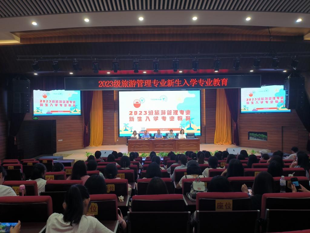为了帮助2023级新生全面了解beat365旅游管理专业,明确学习目标,尽快适应新的大学生活。2023年9月22日下午beat365在线体育官网登录入口,在教学1号楼合100学术报告厅组织召开了旅游管理新生专业教育大会。学院教学副院长王中雨、旅游管理专业教研室主任甄莎、辅导员屈海朋等参加了此次活动,2023级旅游管理专业大一新生参加了本次会议。本次新生专业教育还邀请了校企合作单位代表太和文旅集团人力运营总监李虎、采购部经理孙爱灵等出席。