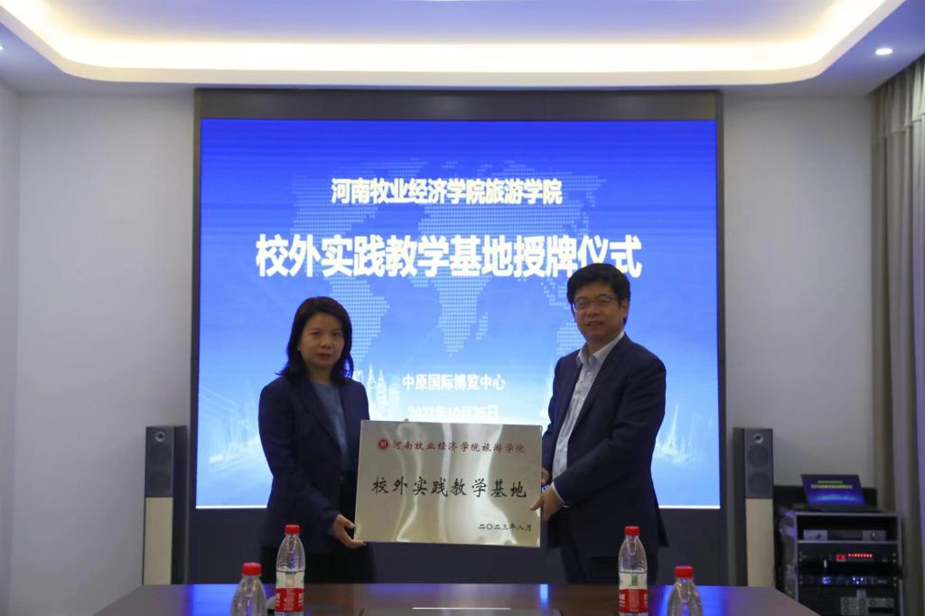 10月25日上午,beat365院长王德静、副院长王中雨、党委副书记李特、会展经济与管理教研室主任连建功及教师代表沙强、吴梦一行6人赴中原国际博览中心授牌beat365在线体育官网登录入口校外实践教学基地,中原国际博览中心党支部副书记、副总经理李春莉、副总经理周卫阳,行政部、展览业务部等相关人员参与授牌仪式。