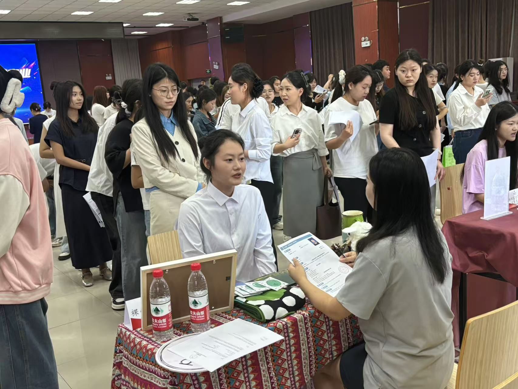 酒店方在招聘过程中更加注重人才的多元化和综合素质,包括语言能力、文化素养、管理技能等方面的要求。在宣讲阶段,各酒店展示了其企业文化、薪资福利、招聘职位以及员工福利待遇等信息;在面试阶段,则涉及酒店与学生之间的交流沟通,并提供即时反馈。为了吸引实习生,酒店通过海报宣传、IP形象多种形式,展现其企业文化与特色,帮助学生掌握酒店详情。酒店人力资源部门负责人也在展位前,主动向同学们介绍酒店的职位需求,并探询他们的求职意向。
