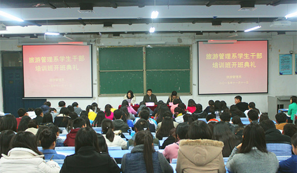 为全面贯彻党的教育方针,提升学生干部的综合能力,积极推进学生素质教育,创造优良的学习及生活环境,促进学生健康成长。旅游管理系于11月11日在合300教室举行2015年“青马工程”大学生干部培训班开班典礼,参加开班典礼的有旅游管理系党总支副书记陈明、团总支书记祝聪楠,典礼由辅导员