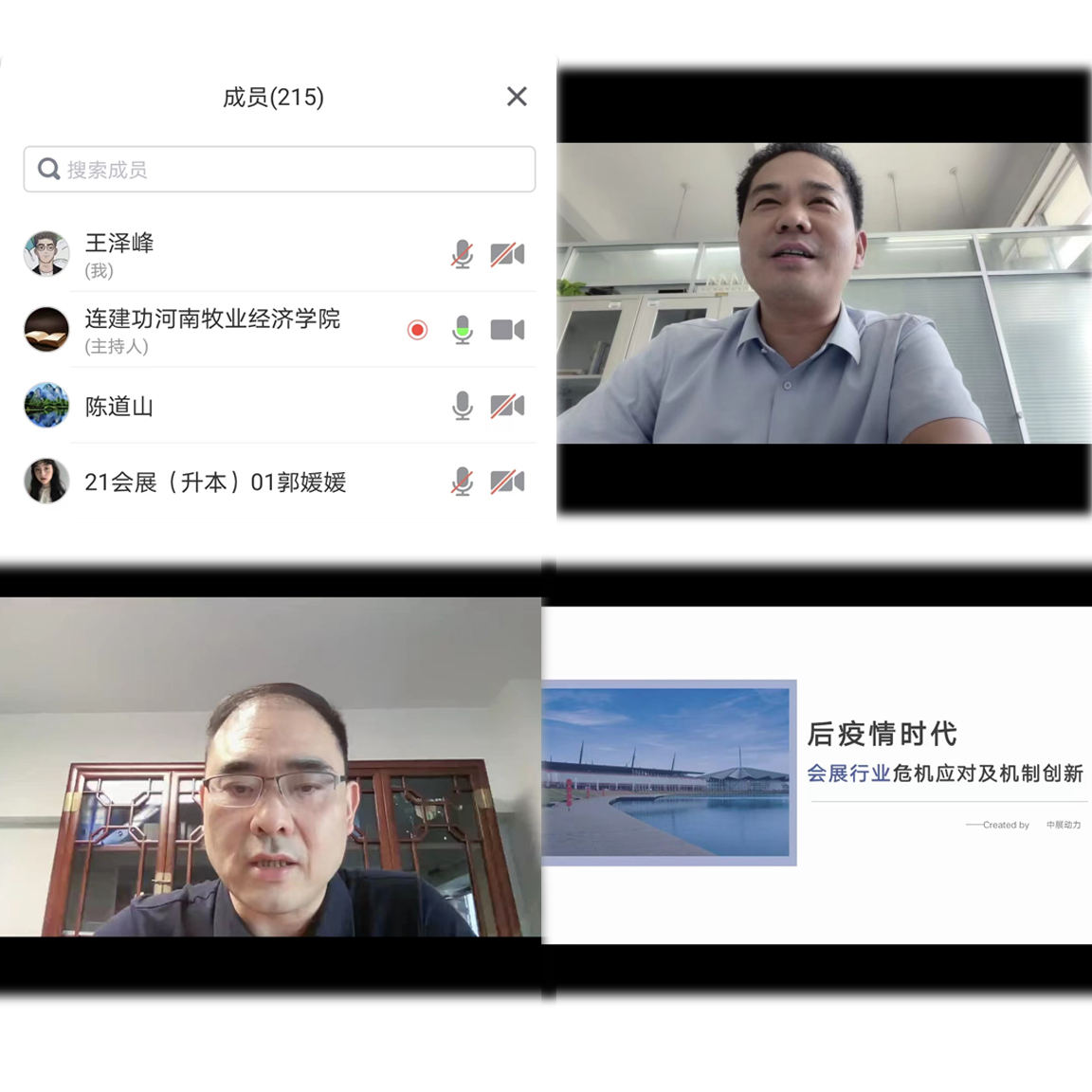 beat365在线体育官网登录入口邀请,河南中展动力展览有限公司总经理、郑州市会展行业协会副会长、beat365在线体育官网登录入口beat365在线体育官网登录入口专业指导委员会委员宋传强先生915下午为beat365师生做了一场后疫情时代会展行业危机应对与机制创新”的线上讲座。beat365在线体育官网登录入口会展经济与管理教研室老师,21、22级会展专业学生认真聆听了讲座,讲座由学院副院长陈道山主持。