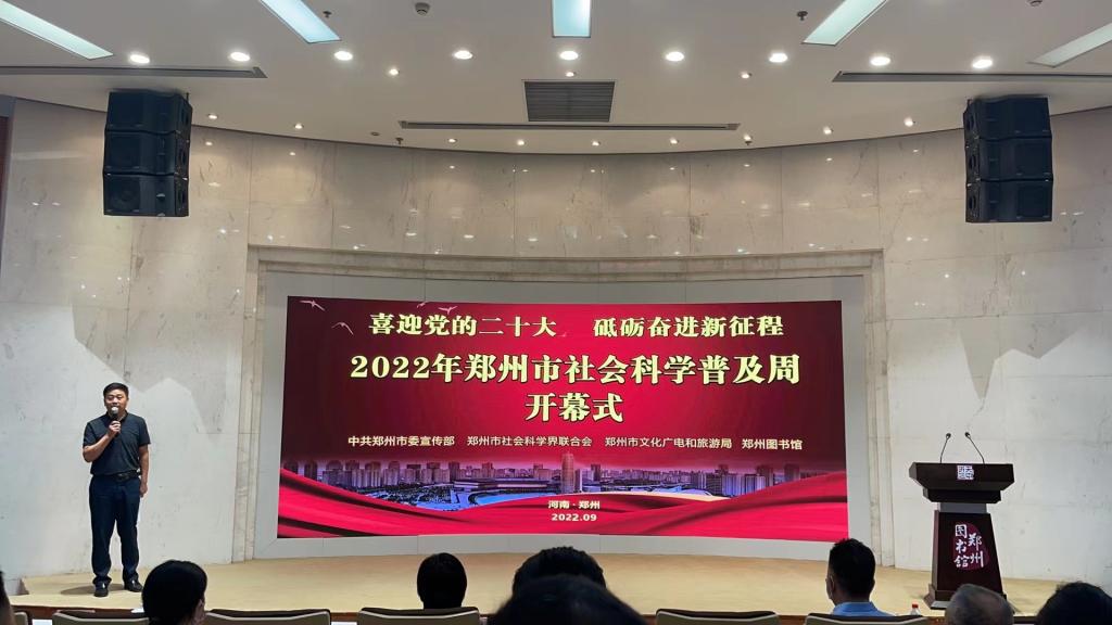 郑州市2022年社会科学普及周开幕式由中共郑州市委宣传部、郑州市社科联、郑州市文广旅局、郑州图书馆联合举办。开幕式现场以视频形式展示了2022年以来郑州市社科普及工作的成效,对郑州市第二批社科普及示范基地进行授牌。同时,出席开幕式的相关领导、嘉宾为郑州市社科普及优秀指导员、基层优秀宣讲员代表、市社科普及“微视频”作品获奖代表颁发证书。郑州市自2017年起,已连续举办了五届社科普及周活动,今年的第六届活动以“喜迎党的二十大砥砺奋进新征程”为主题,按照全市同一主题、室内室外结合、线上线下同步的方式进行。