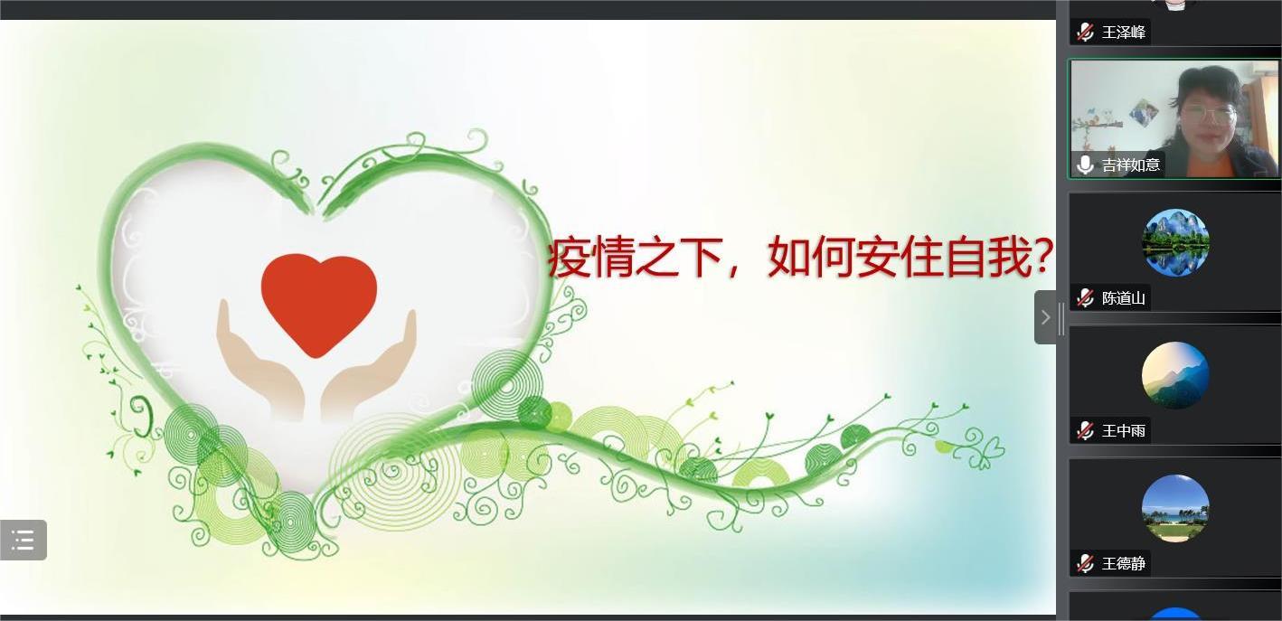 11月3日下午,受beat365邀请,国家二级心理咨询师、河南省心理咨询师协会平台特约专家、beat365大学生心理健康教育中心心理健康教研室主任董晓倩为beat365教师做“疫情之下,如何安住自我”主题讲座。全院教师参与了本次线上讲座,讲座由副院长陈道山主持。