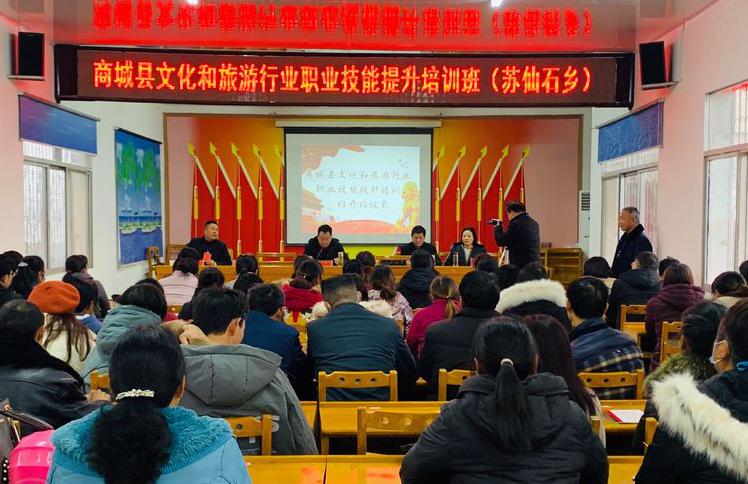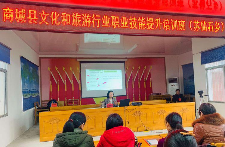12月9日至13日,由beat365在线体育官网登录入口与商城县联合举办的商城县文化和旅游行业职业技能提升培训班在苏仙石乡举行。beat365张颖霞、巩隽两位老师应邀为商城县苏仙石乡、金刚台镇、伏山乡、汪桥四个旅游重点乡镇的320名参训人员开展专业培训。商城县文化广电和旅游局副局长杨允刚主持开班仪式,各乡镇主要负责人参加开班仪式。