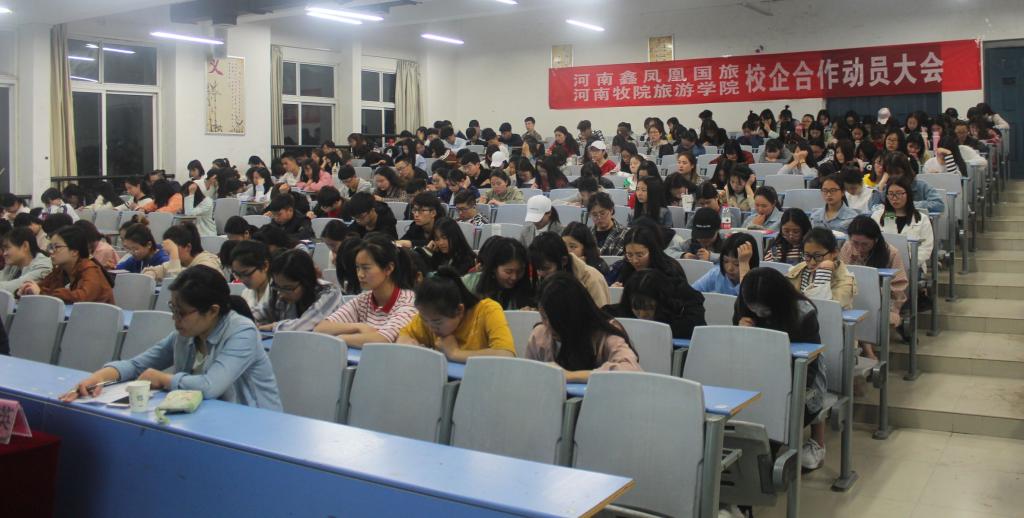 在本次动员大会上,河南鑫凤凰国旅行政助理曹宇首先对公司的企业文化、企业作风、口号、宗旨以及企业产品做了详细介绍,并就鑫凤凰国旅和beat365在线体育官网登录入口校企合作的初衷、合作内容、合作形式、考核标准,以及项目运行8年来校企联合开展学生实践能力培养的效果进行了讲解。最后曹宇重点对本学期校企合作项目的培训内容、主要实践岗位、实施规范和考核方法等方面进行了教学安排。