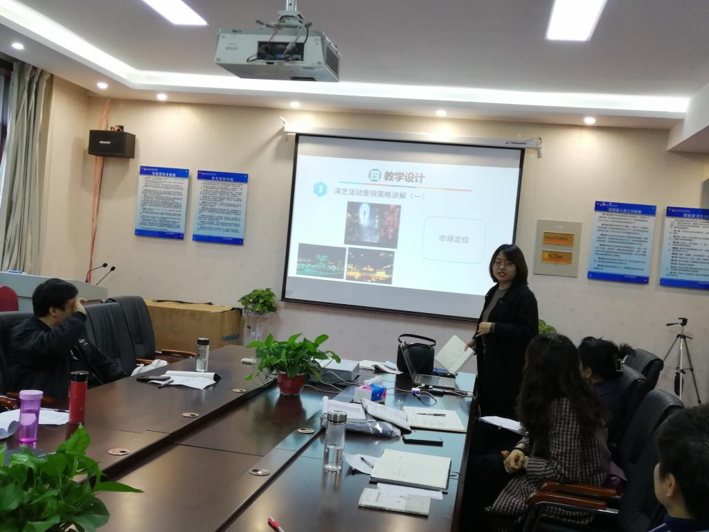 活动中,张静博士结合《休闲学》中的“生命周期与休闲”,陈艳萍老师结合《会展广告》中的“会展广告的创意策划”,澹丰霞老师结合《会展市场营销》中的“会展产品的内涵”,沙强老师结合《体育赛事管理》中的“赛事营销与推广”等进行了说课示范,详细阐述了章节内容要达到的教学目标、采用的教学方法、选取的教学案例、布置的课后作业等。说课结束后,大家围绕如何改进教学内容的组织呈现、如何设计教学环节、如何渗透课程思政、如何体现课程理论与实践的结合、如何发挥学生在课堂中的主动性和参与性等展开热烈研讨和交流。